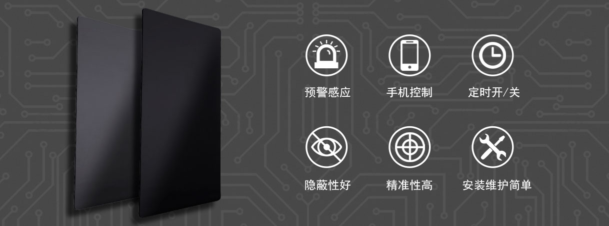 采用特殊硅胶材质,通过挤压产生电阻变化,感应重力而做出报警提醒。预警感应的重力值可自定义设置, 在设防状态下,开启预警感应功能,当入侵者踏入硅胶垫时,感应到的重力值超出设置限定值时,立即推 送报警信息到主人手机。在无漏报无误报的同时,可室内外安装,受环境因素影响较小。